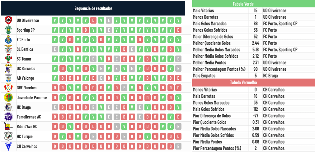Se o Murches-Benfica poderá ser determinante para a mudança de posição dos águias por troca com o Tomar se os nabantinos vencerem o Barcelos, o Oliveirense-Braga poderá permitir o aumentar de distância do 1º para o 2º classificados do campeonato. Mas poderá ser tudo ao contrário e se o Murches vencer o Benfica e o Valongo vencer no Parque das Tílias e o Barcelos perder em Tomar, então a luta pelos últimos lugares de posição de Playoff poderá aumentar e todas as equipas que se posicionam entre os 5º e 8º lugares da tabela classificativa começarão a fazer “contas” com base na suposição de quem vão defrontar na 1ª eliminatória daquela fase decisiva do campeonato. E estes não são os únicos cenários, obviamente. Por exemplo, se o Barcelos vencer em Tomar e o Benfica perde em Murches, então estas 3 equipas irão lutar pelo 4º lugar que dará vantagem na 1ª eliminatória do Playoff aquando da disputa do 3º jogo daquela fase.