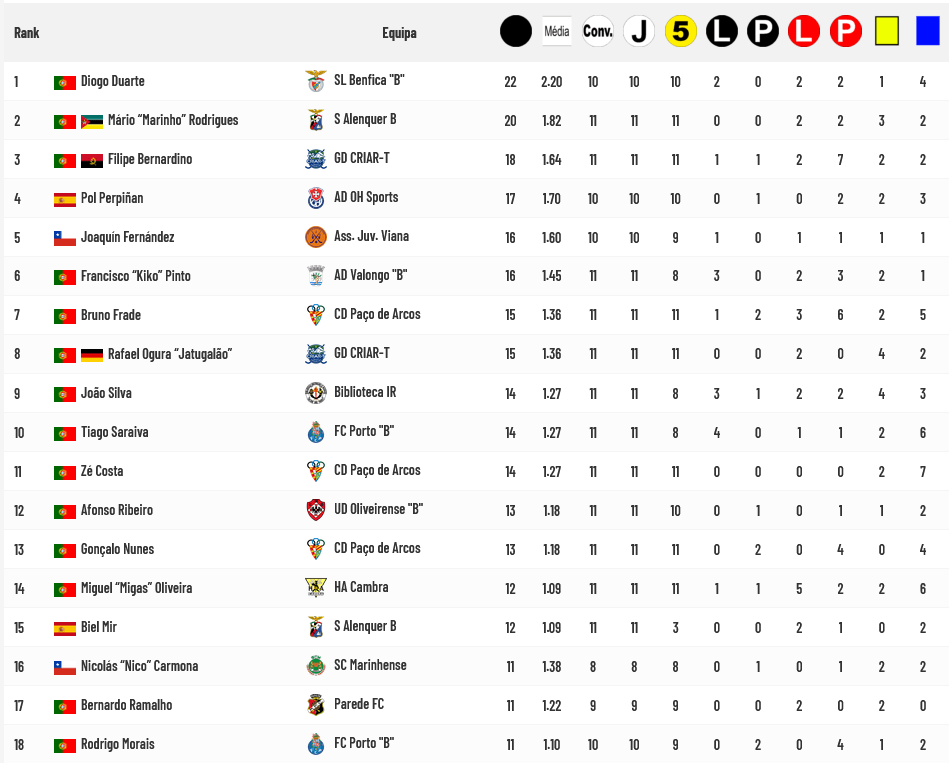 Diogo Duarte é o melhor goleador da 2ª Divisão Nacional seguido de “Marinho” Rodrigues e Filipe Bernardino…