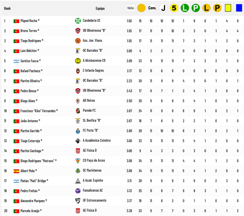 De todos os guarda-redes que jogaram em, pelo menos, metade dos jogos para os quais foram convocados, Miguel Rocha, Bruno Torres e Tiago Rodrigues são os únicos que apresentam médias inferiores a 2 golos sofridos por cada jogo realizado…