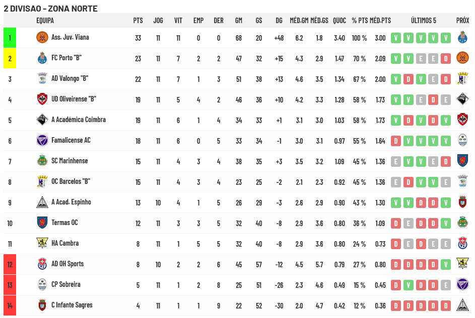 A Juventude de Viana é, de entre todas as equipas que participam no Campeonato Nacional da 2ª Divisão, a única que tem vitórias em todos os jogos já realizados.