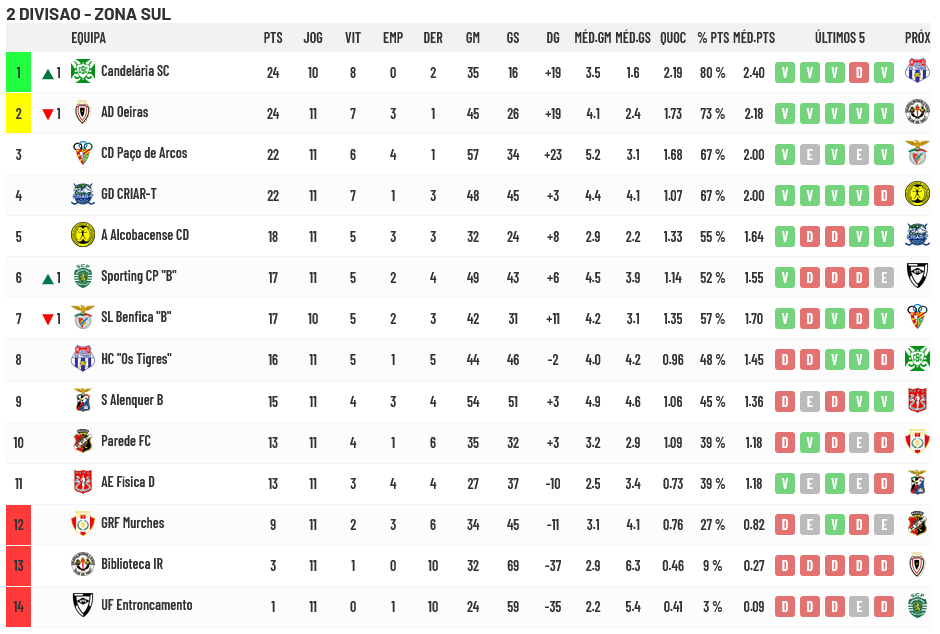 Na Zona Sul, Candelária e Oeiras disputam as posições de subida direta ao Campeonato Placard e de participação na Liguilha de Apuramento de subida mas os açorianos (e o Benfica “B”) têm 1 jogo realizado a menos que as restantes equipas… No que diz respeito à despromoção, Murches, Biblioteca e Entroncamento estão na zona de descida…