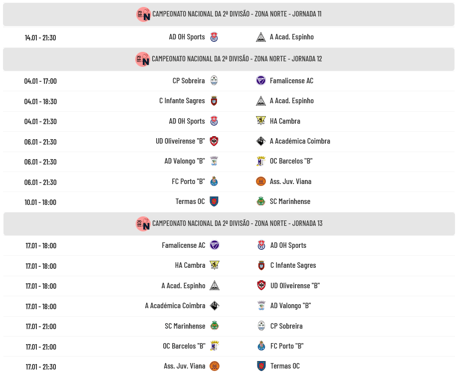 Na Zona Norte, a Juventude de Viana está em posição de subida direta ao Campeonato Placard enquanto o FC Porto “B” ocupa a posição de participação na Liguilha de Apuramento de subida… Já no que concerne à despromoção, Sobreira e Infante Sagres estão na zona de descida enquanto Cambra e OH Sports disputam o último lugar de permanência… Académica de Espinho e OH Sports têm 1 jogo realizado a menos que as restantes equipas…