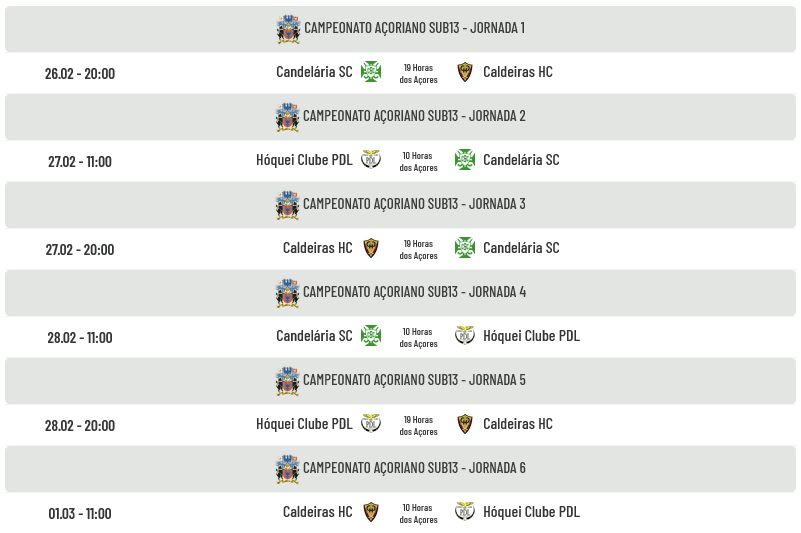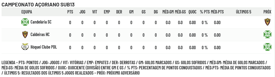 Realiza-se este fim de semana o Campeonato Regional Açoriano Sub13 com a participação das equipas do HC PDL (Ponta Delgada), Caldeiras HC (Ribeira Grande) e Candelária SC (Madalena do Pico). O Campeão da época passada, Marítimo SC, não fez equipa nesta época desportiva.
