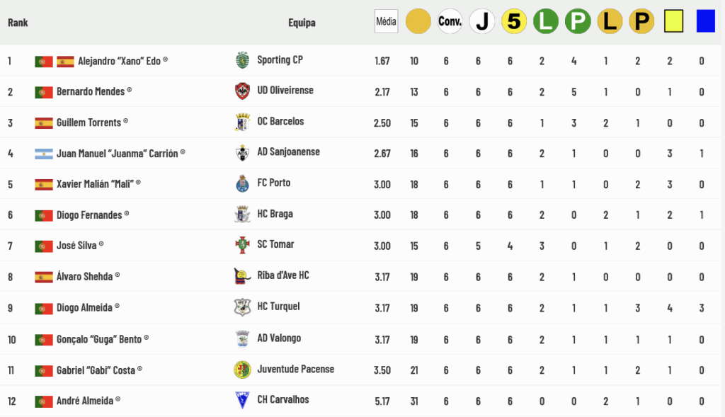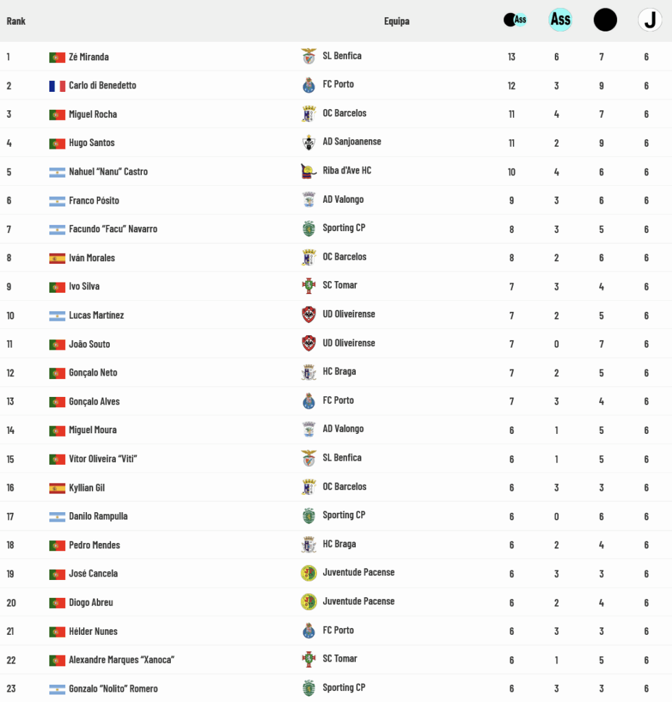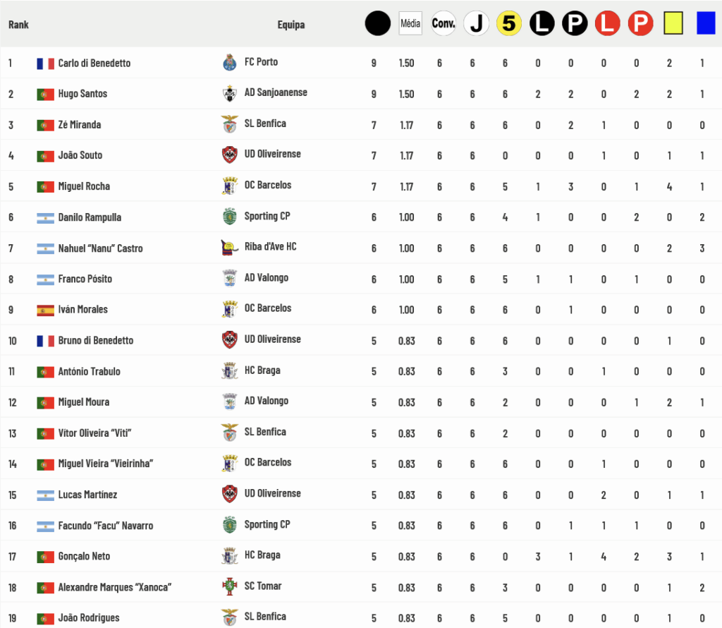 Carlo Di Benedetto e Hugo Santos são agora os primeiros da lista de goleadores com 9 golos marcados cada, com Zé Miranda, João Souto e Miguel Rocha na perseguição com menos 2 golos marcados.