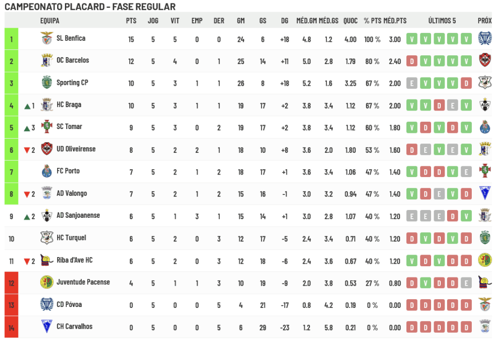 A Classificação Geral após a 5ª Jornada é a abaixo apresentada: