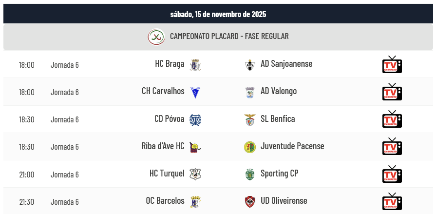 No fim de semana realiza-se a 6ª Jornada com os seguintes jogos: