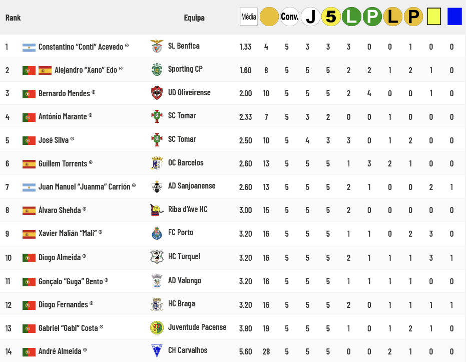 Se contabilizarmos somente os guarda-redes que realizaram mais de metade dos jogos par os quais foram convocados, verificamos que “Conti” Acevedo é o que tem melhor média e golos sofridos (1,33 por jogo) e “Xano” Edo é o outro guarda-redes com menos de 2 golos sofridos por jogo: