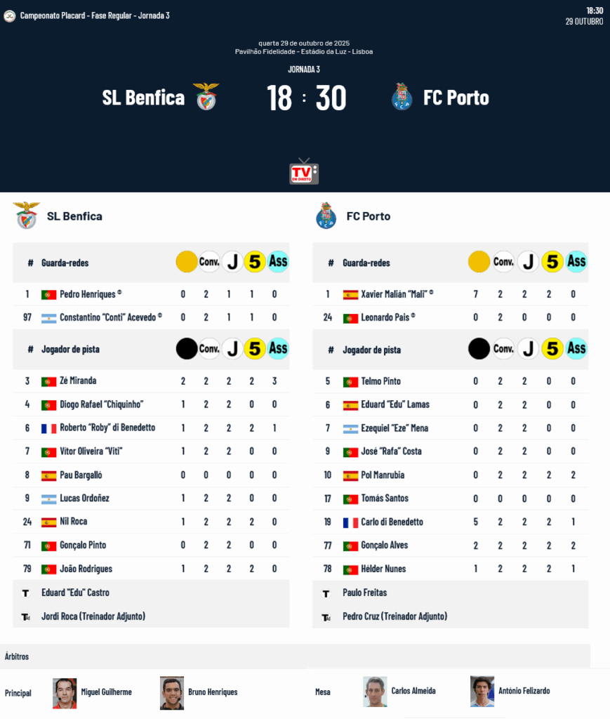 Vejamos quais são os jogos da 3ª Jornada já realizados: