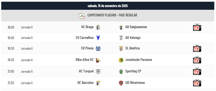 No próximo fim de semana realiza-se a jornada 6 com o seguinte agendamento de jogos: