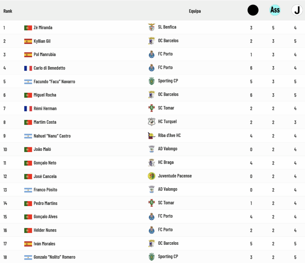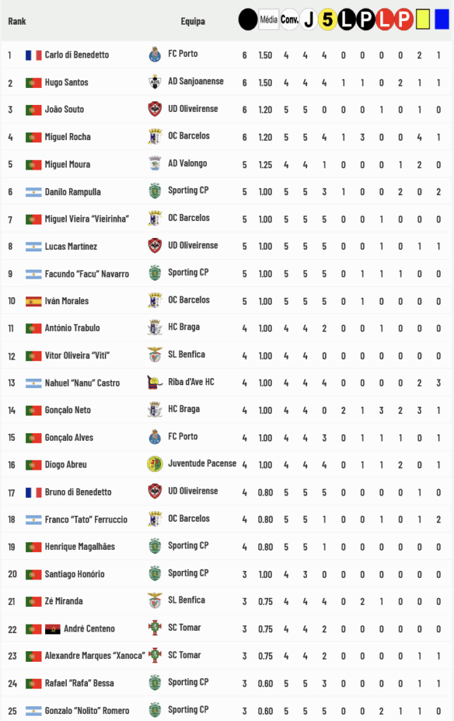 Carlo Di Benedetto, Hugo Santos, João Souto e Miguel Rocha lideram a lista de goleadores