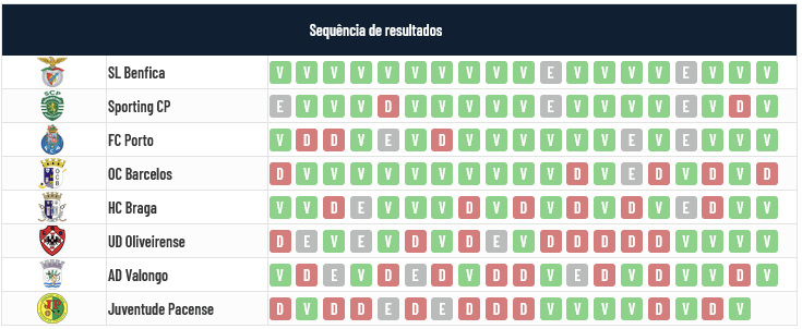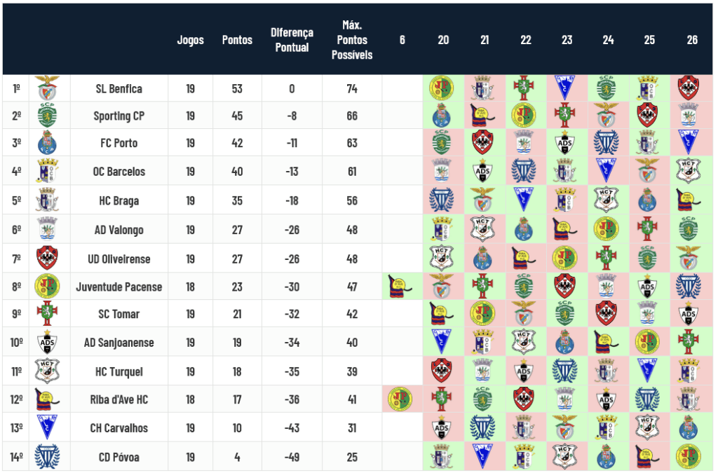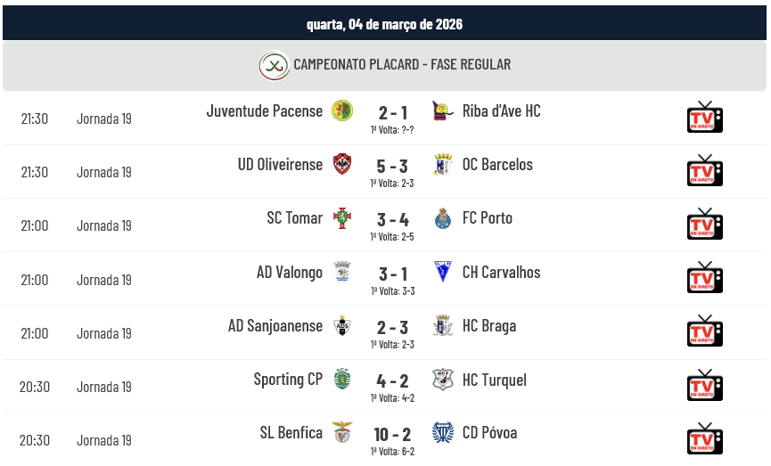 Como podemos ver, só a Oliveirense conseguiu 4 vitórias nos 4 últimos jogos, com Benfica e Porto a ceder um empate na jornada 16, precisamente no jogo entre eles!! Vejamos os resultados dos jogos da 19ª Jornada realizada precisamente ontem:
