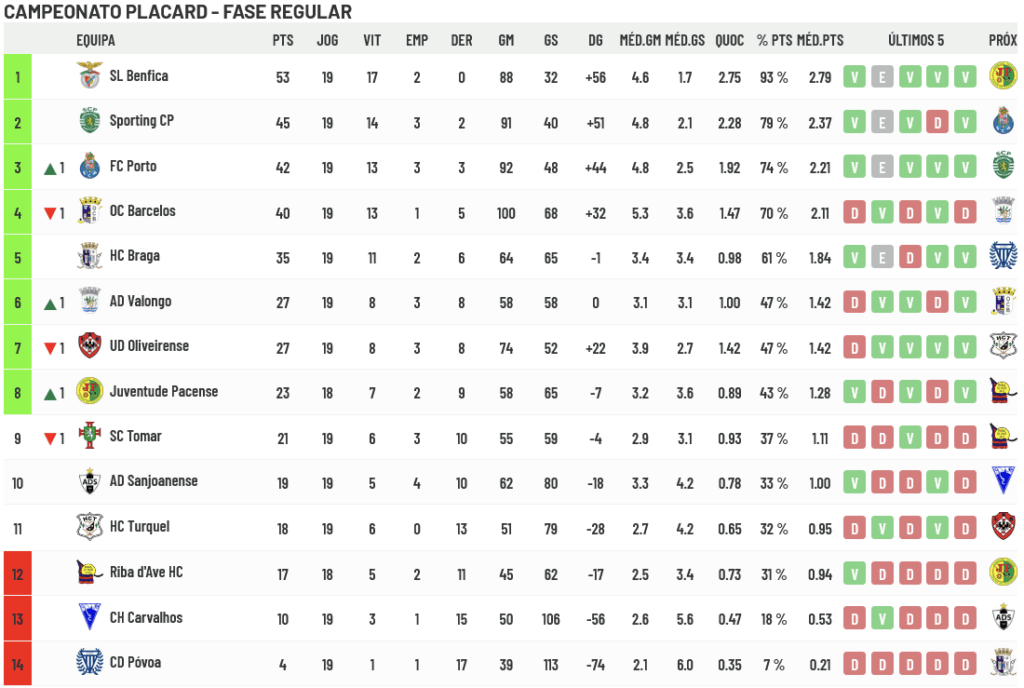A jornada 19 do Campeonato Placard trouxe novidades, entre elas o “Efeito Geitoeira”… Pois é, a Oliveirense é neste momento a equipa com melhor série de vitórias consecutivas (no campeonato) desde o jogo com o Desp. Póvoa (10-1), após o qual venceu o Braga (5-0), o Carvalhos (5-2) e o Barcelos (5-3) com quem tinha perdido para a WSE Champions League (1-4)…