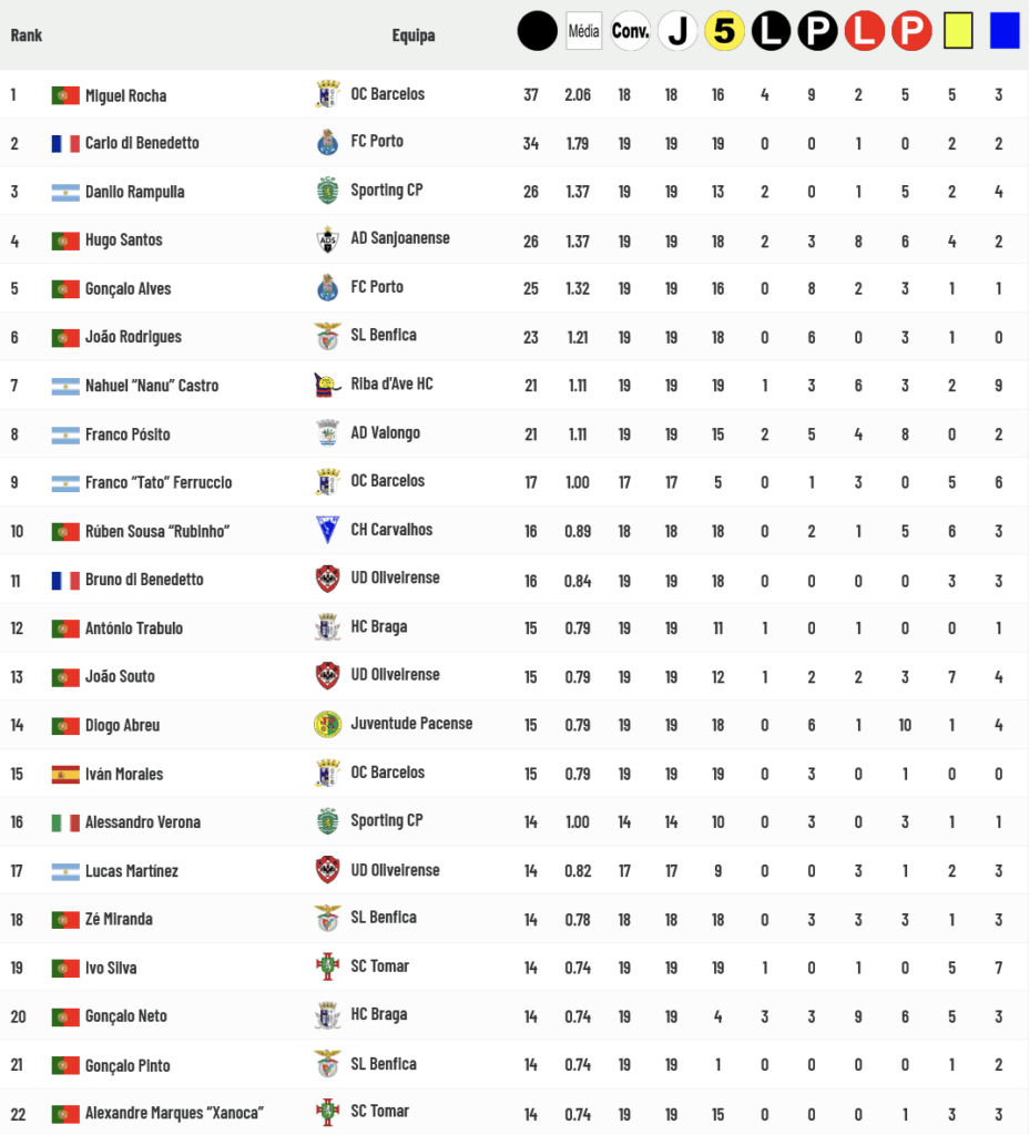 Miguel Rocha não jogou contra a Oliveirense mas beneficiou do “nulo” de Carlo Di Benedeto e Hugo Santos que viu, inclusive, Danilo Rampulla igualá-lo na tabela dos goleadores. João Rodrigues marcou 3 golos contra o Desp. Póvoa e aproximou-se de Gonçalo Alves.