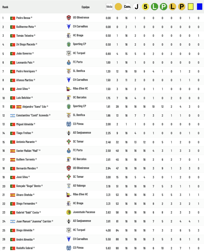 Abaixo encontra a lista de todos os Guarda-Redes que já participaram ativamente em jogos do Campeonato Placard desta época desportiva: