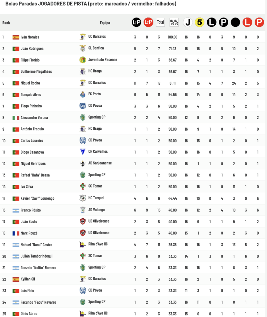 O Porto é a equipa cujos jogadores apresentam melhor percentagem de transformação de Bolas Paradas em golo, com o Barcelos logo depois, sendo estas as únicas equipas que apresentam percentagens superiores a 40% de sucesso.