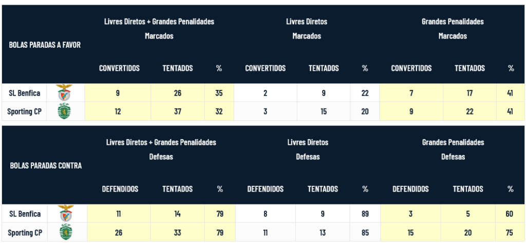 Há somente 3 guarda-redes que nunca sofreram golos de bola parada: José Silva, Pedro Bessa e Tiago Freitas: