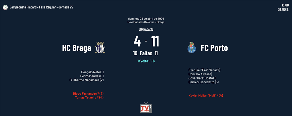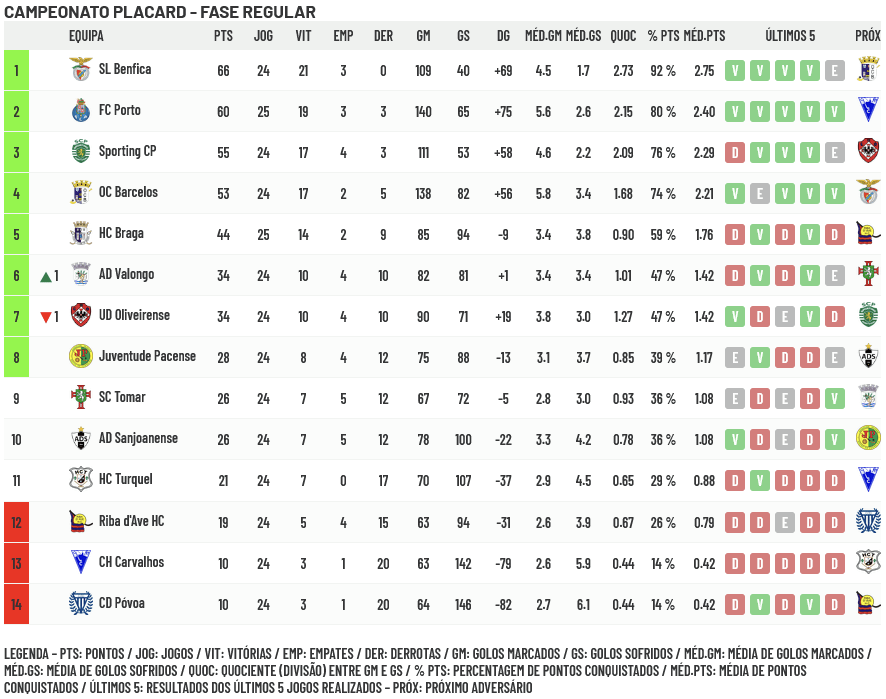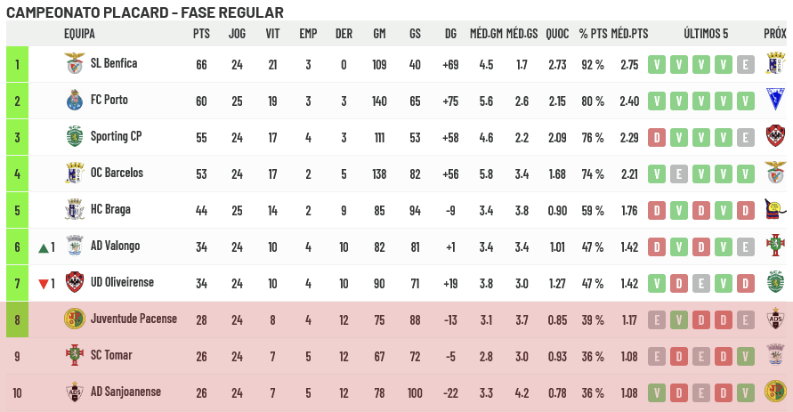 Com a realização do Braga-Porto no domingo passado iniciou-se a Jornada 25, penúltima da Fase Regular do Campeonato Placard: