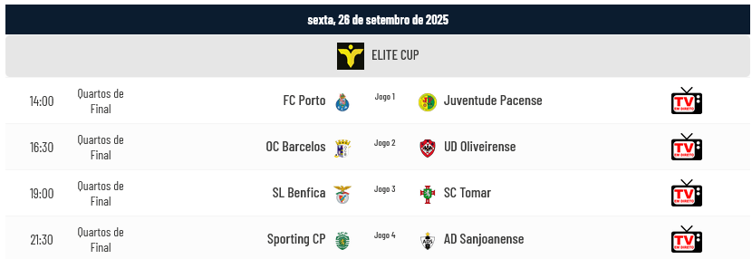 Começa amanhã a Elite Cup e esta é a melhor altura para conhecermos os jogos que se vão realizar nos Quartos de Final: