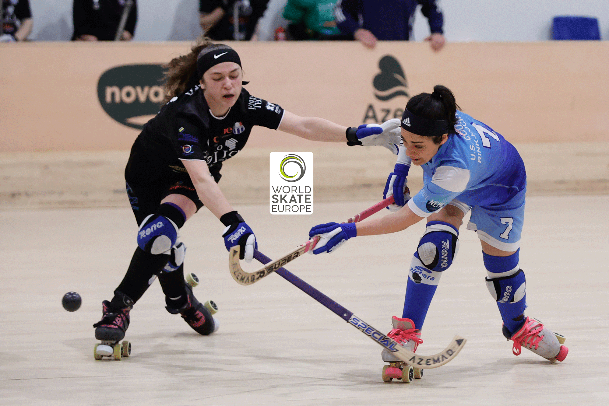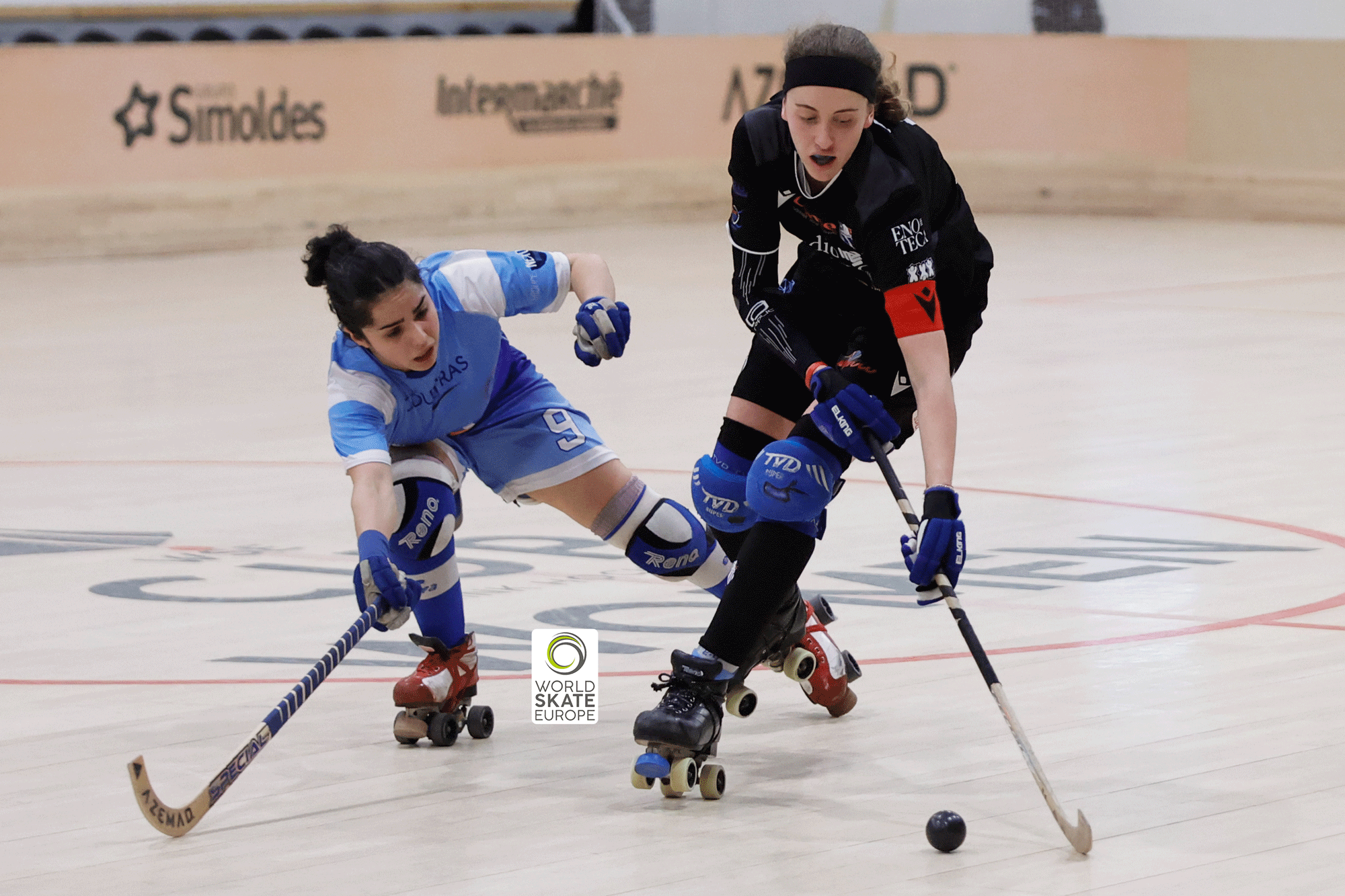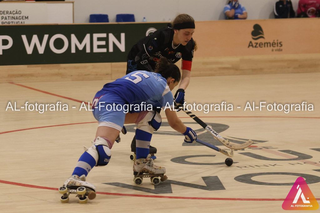 Bola de saída das francesas com a jogadora argentina, descaída para o lado esquerdo, a desferir um forte remate