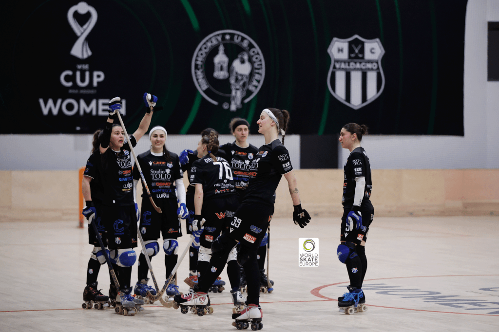 Boa finalização de remate enrolado da jogadora italiana, após assistência de Matilde Ghirardello
