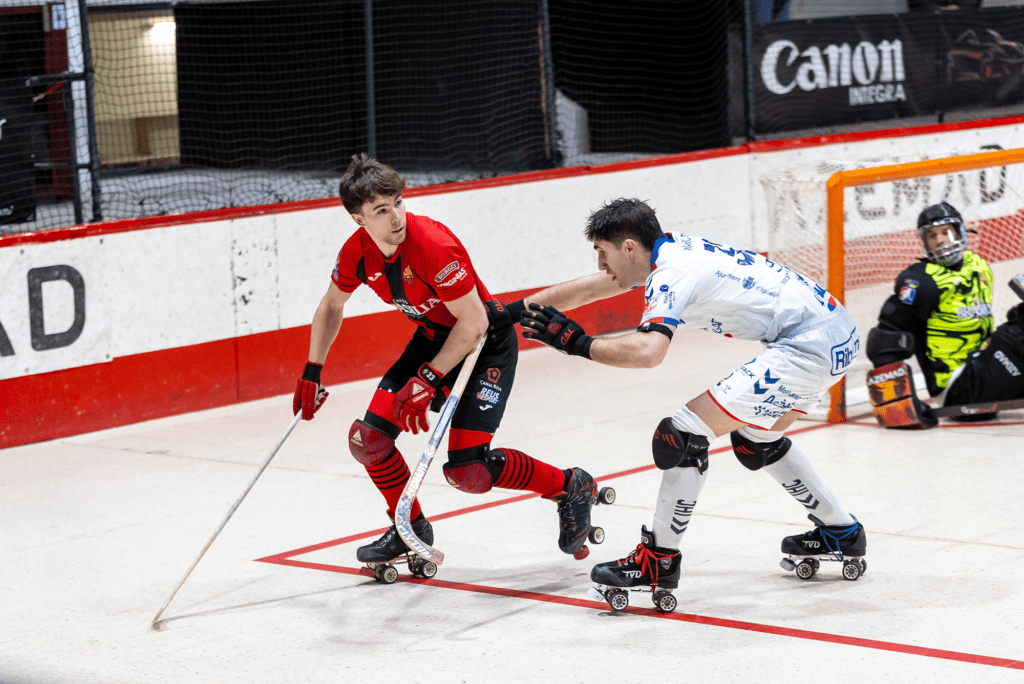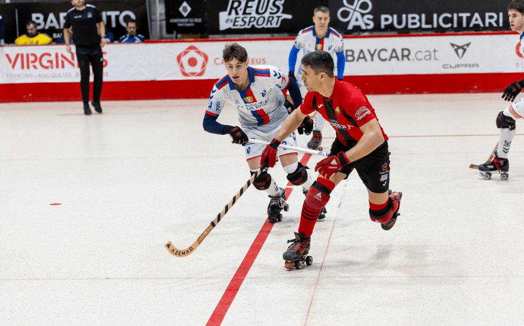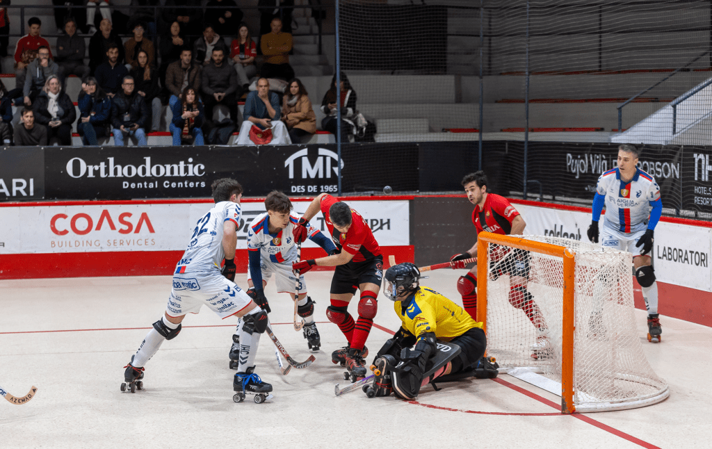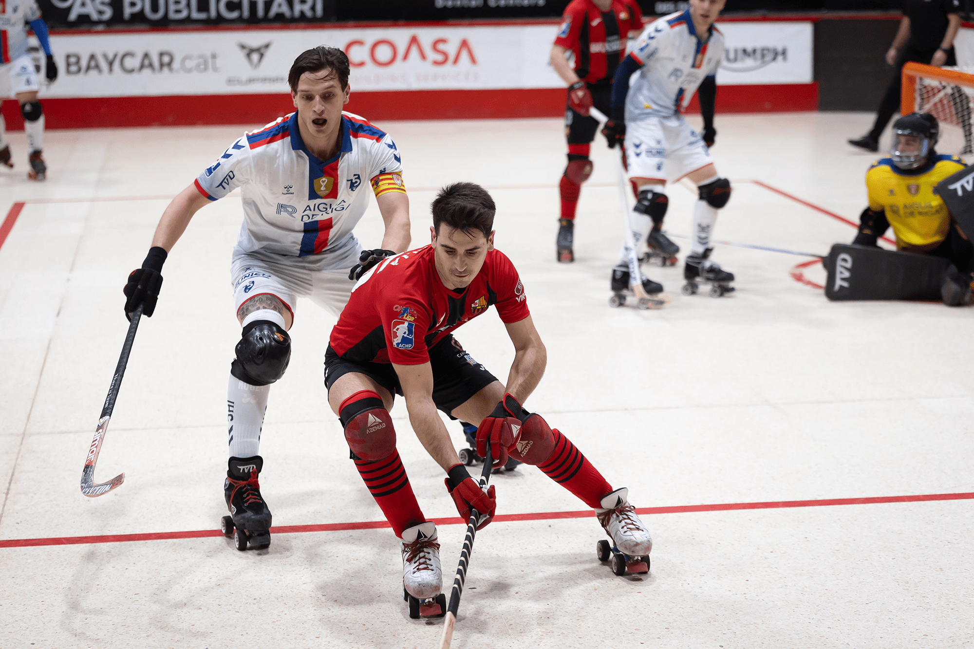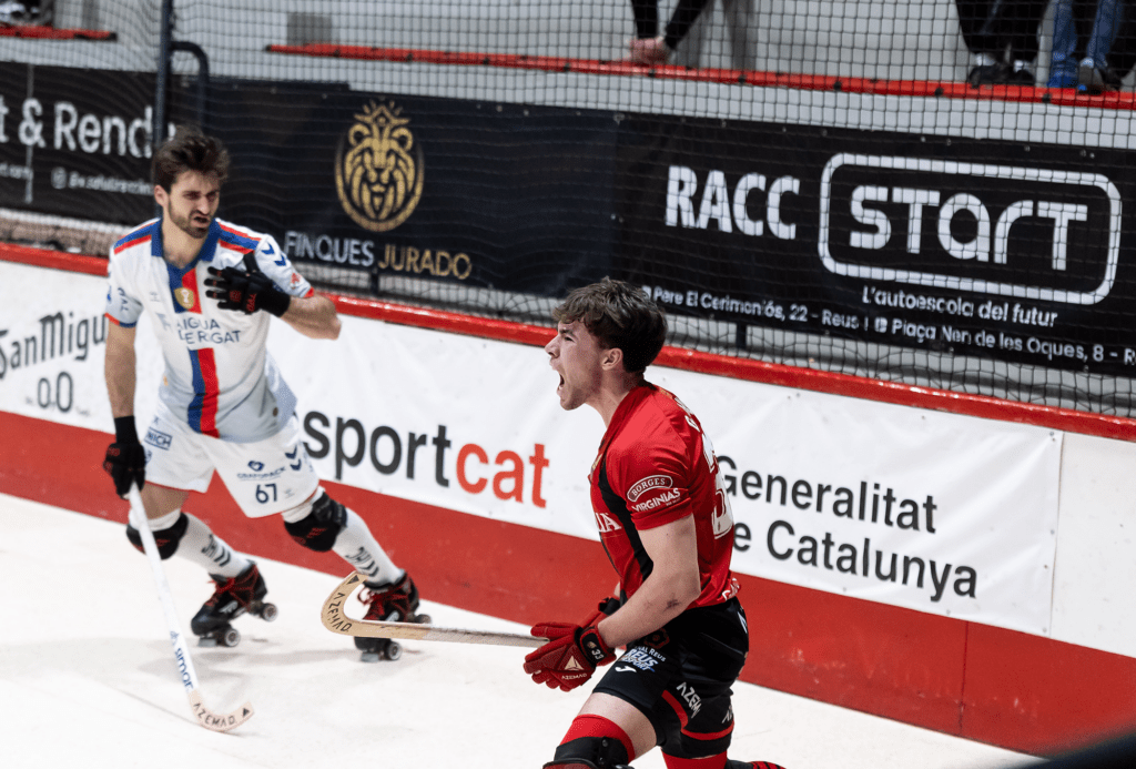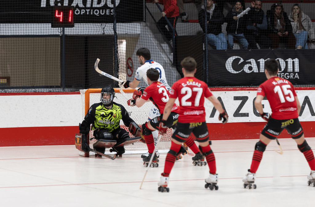 Após um ataque do Igualada, Joan Ruano arranca para a sua meia-pista mas desloca a baliza do Reus