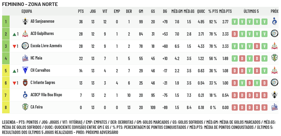 Na Zona Norte, Sanjoanense, Escola Livre, Gulpilhares e Maia já estão apuradas para participar na Fase Regular conjuntamente com as 4 primeiras classificadas da Zona Sul. A única dúvida que resta nesta zona centra-se nas 2ª e 3ª posições da tabela classificativa (visto que Sanjoanense em 1ª e Maia em 4ª já têm as suas posições finais definidas) e o Gulpilhares vai precisamente receber a Escola Livre no próximo dia 15 para fechar a jornada 13, altura em que a definição dos lugares finais poderá ser decidida. O Gulpilhares tem alguma vantagem devido à vitória em Oliveira de Azeméis na 1ª volta mas estes jogos decisivos nunca têm favoritos e a vitória poderá cair para qualquer dos conjuntos. O empate servirá os objetivos do Gulpilhares