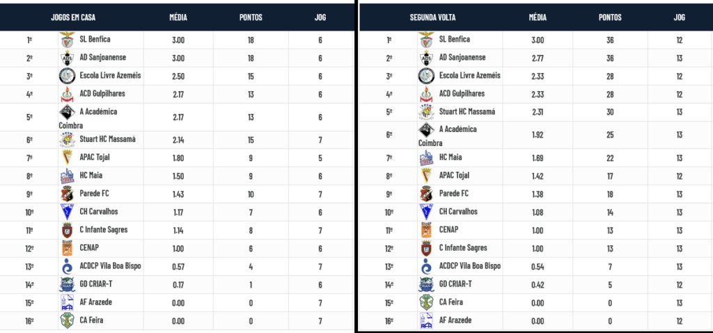 Benfica e Sanjoanense não perdem jogos “em casa” e somente o Benfica consegue vencer todos os jogos “fora de casa”