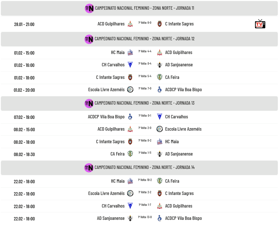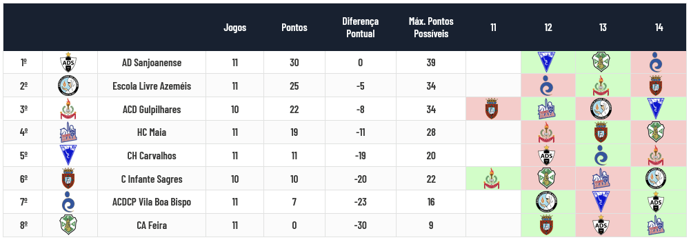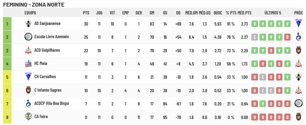 Na Zona Norte, Sanjoanense, Escola Livre e Gulpilhares já estão apuradas para participar na Fase Regular onde, conjuntamente com a 4ª classificado desta zona, encontrarão as 4 primeiras classificadas da Zona Sul. A luta para definir a 4ª posição que permitirá apurar a última equipa para a fase seguinte vai resumir-se entre Maia e Carvalhos, se bem que as maiatas têm uma vantagem enorme pois necessitam somente de 1 ponto virtual para ficarem definitivamente apuradas para a Fase Regular e podem até nem necessitar de ponto algum em virtude de nos 3 jogos que faltam o Carvalhos ter obrigatoriamente de vencer todos (a começar já pela receção à líder Sanjoanense!!!!) ou o Maia fazer um empate, o que não parece ser muito irreal porque ainda vai defrontar o Acad. Feira (só com derrotas na prova), o que me parece dar enorme vantagem ao Maia. No dia 1 de fevereiro já saberemos mais um pouco do ponto de situação.
