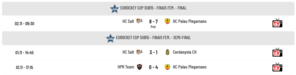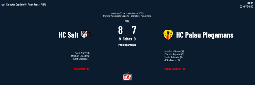 No torneio Feminino a Final foi ganha pelo Salt que venceu o Plegamans por 8-7 após prolongamento
