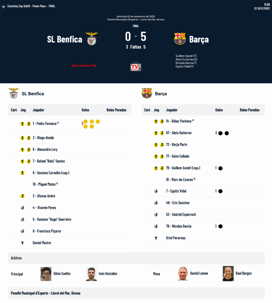 A equipa do Barça venceu o Benfica por 5-0 na Final do torneio masculino da Eurockey Cup 2025.
