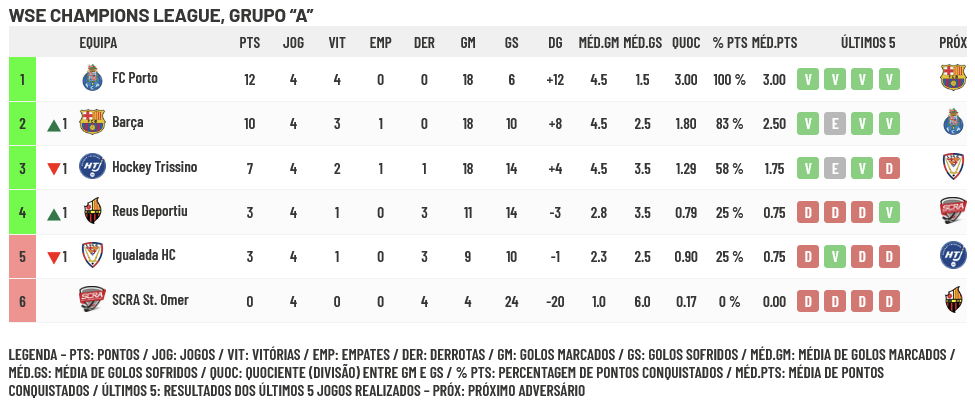 O Porto venceu o Trissino de forma categórica assumindo o favoritismo no Grupo “A”, com o Barça a recuperar de um início mais apagado e o Reus a obter a primeira vitória.