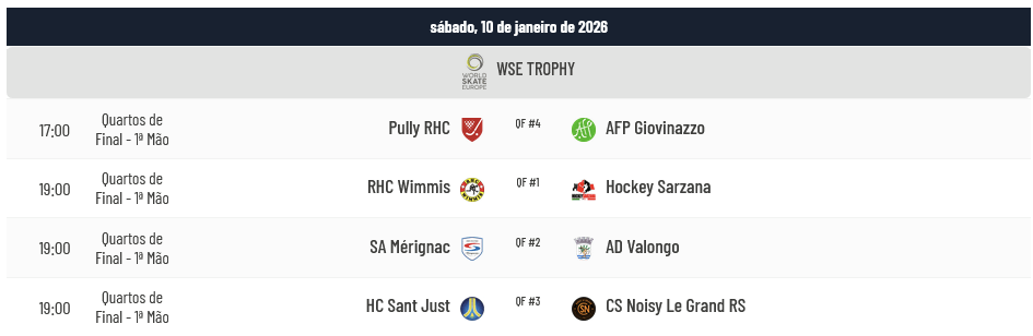 Disputa-se hoje os jogos da 1ª Mão dos Quartos de Final da WSE Trophy, prova em que a AD Valongo tem grandes expectativas, com o seguinte agendamento: