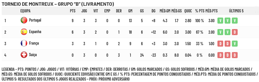 Vejamos agora os resultados dos jogos de ontem a começar pelo grupo “B”, o grupo denominado “Livramento” onde está inserido Portugal: