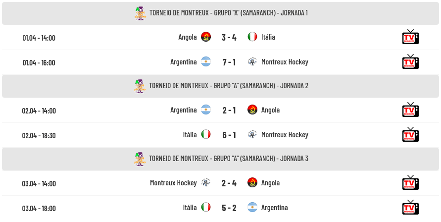 Resultados de todos os jogos do Grupo “A”: