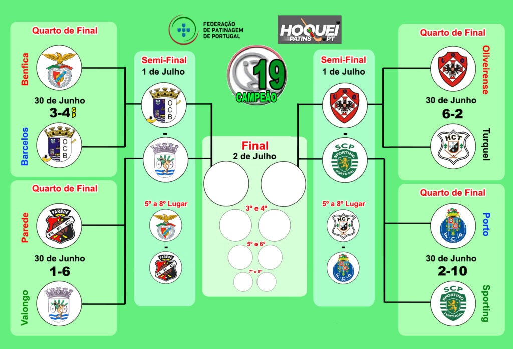 Oliveirense, Barcelos, Valongo e Sporting estão, assim, apurados para os jogos das semi-finais e Turquel, Benfica, Parede e Porto vão disputar os jogos que apuram os 5º a 8º lugares, conforme quadro abaixo: