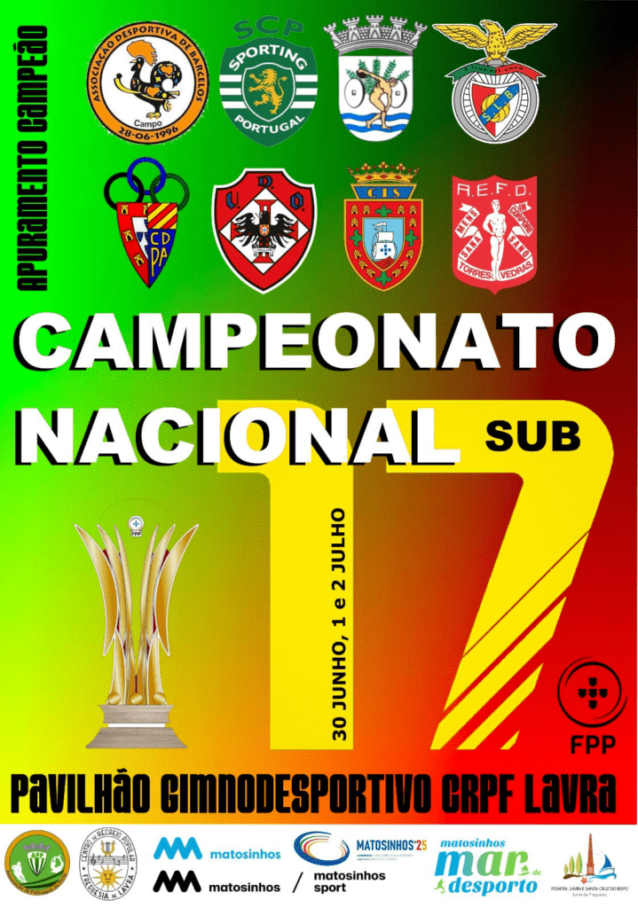 Por sua vez, a Fase Final do Apuramento de Campeão do Nacional Sub17 terá lugar lugar de sexta-feira a domingo no Pavilhão Gimnodesportivo de Lavra com a realização das provas dos Grupos “1” e “2”, fase que antecede a Final Nacional do fim de semana seguinte em Vialonga.