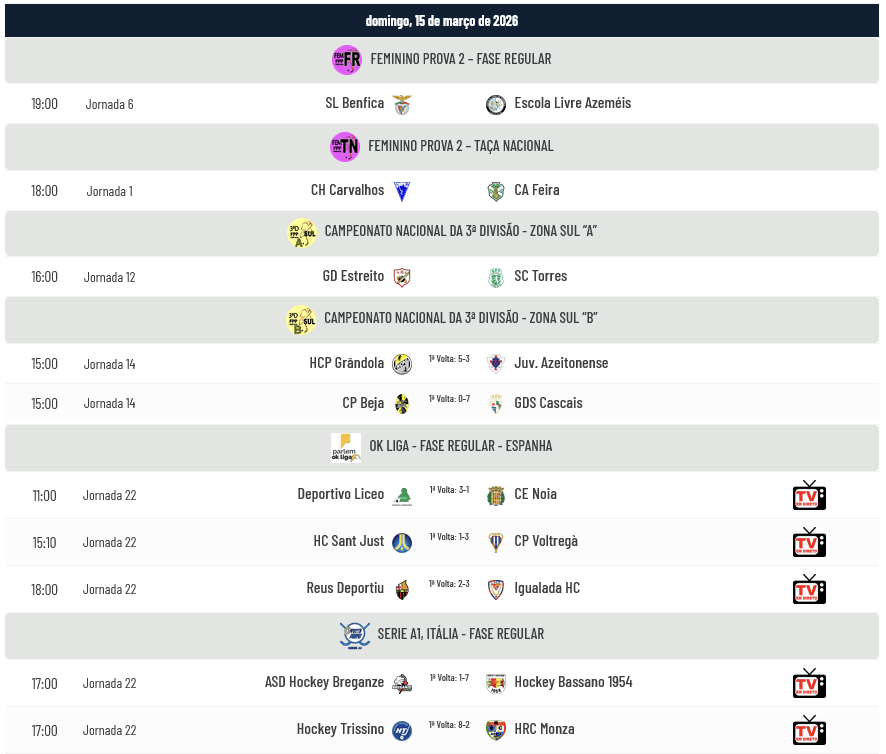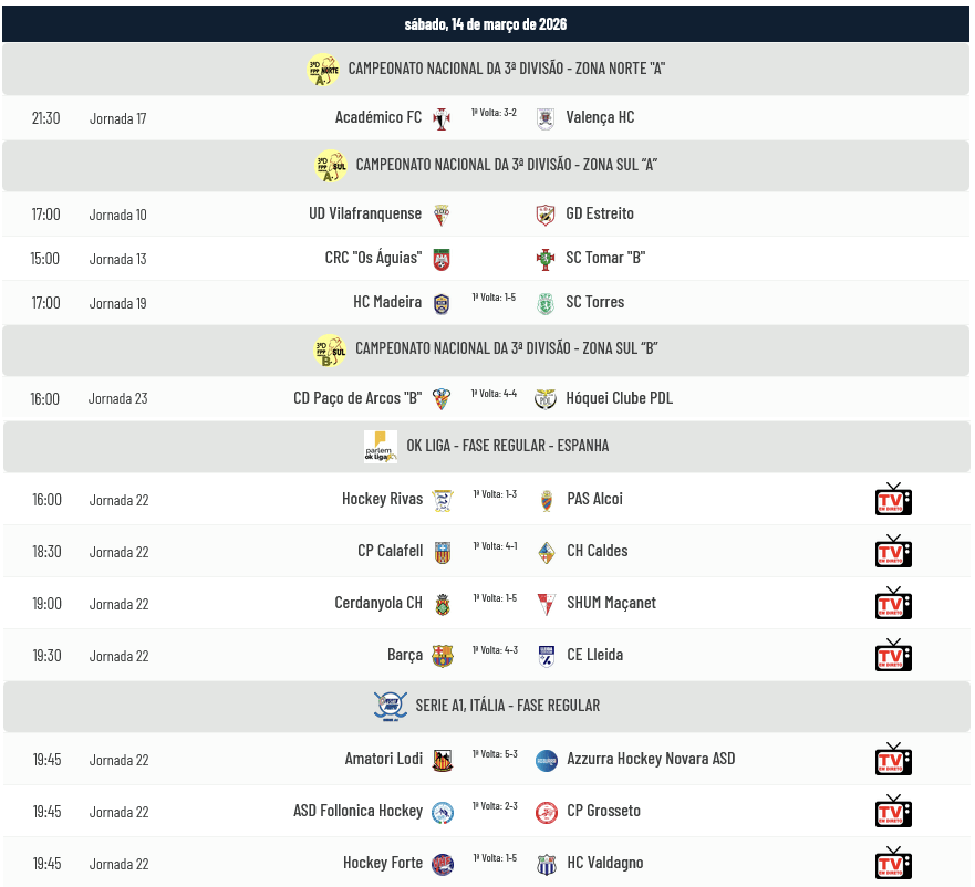 Para além desses, e somente para mencionar os mais importantes jogos da categoria de seniores, há ainda jogos da 2ª e 3ª Divisões, Nacional Feminino e os sempre importantes campeonatos espanhol e italiano: