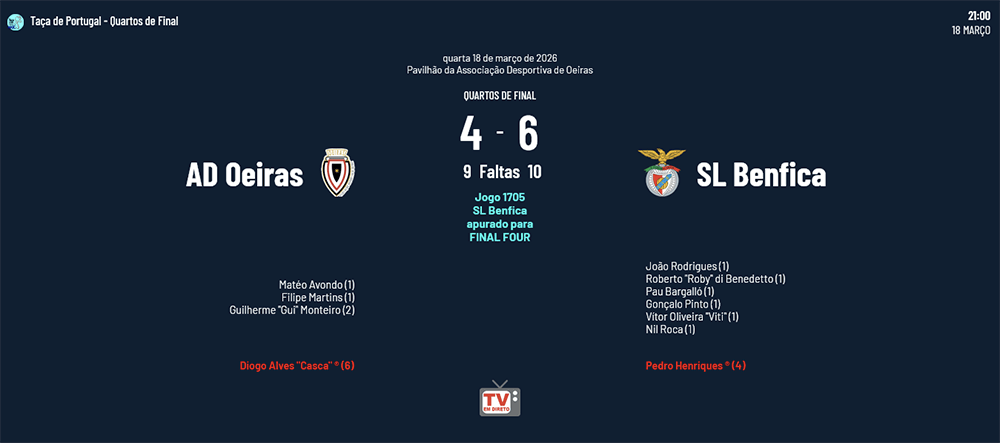 Benfica vence Oeiras e é o último apurado para a Final Four da Taça de Portugal