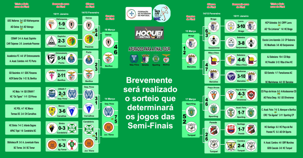 Ficam assim apurados as seguintes quatro equipas para a final Four da Taça de Portugal:
