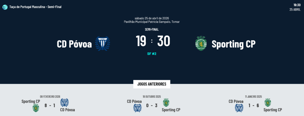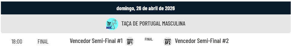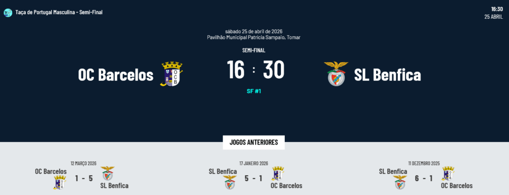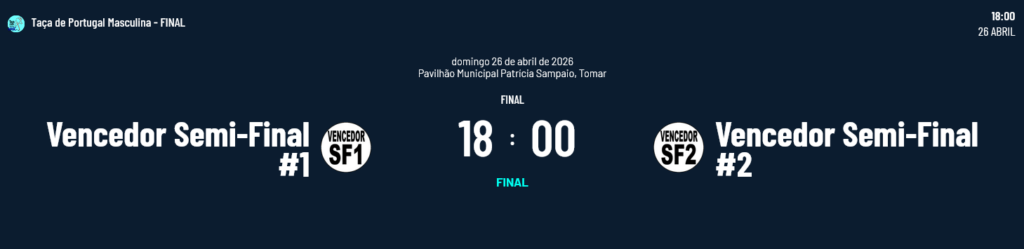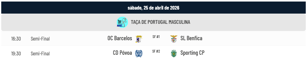 Na competição masculina há também um foco intenso sobre a Semi-Final entre o Barcelos e o Benfica, à procura não só da presença na Final mas ainda da vitória na Taça de Portugal. Os jogos são os seguintes: