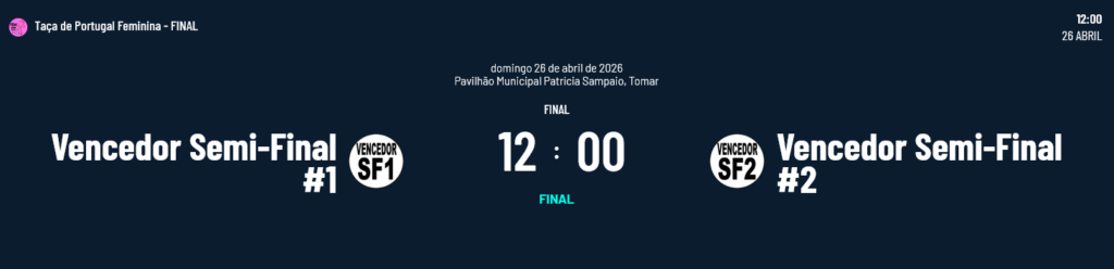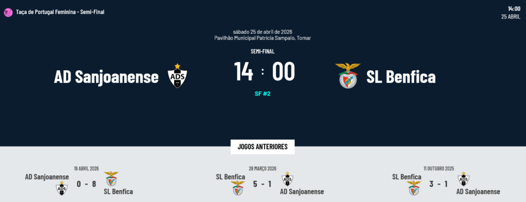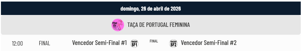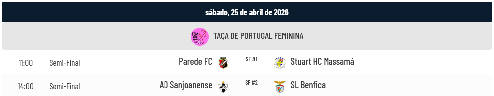 Na competição feminina o foco vai para a Semi-Final entre a Sanjoanense e o Benfica, candidatos mais mediáticos à Final da Taça de Portugal. Os jogos são os seguintes: