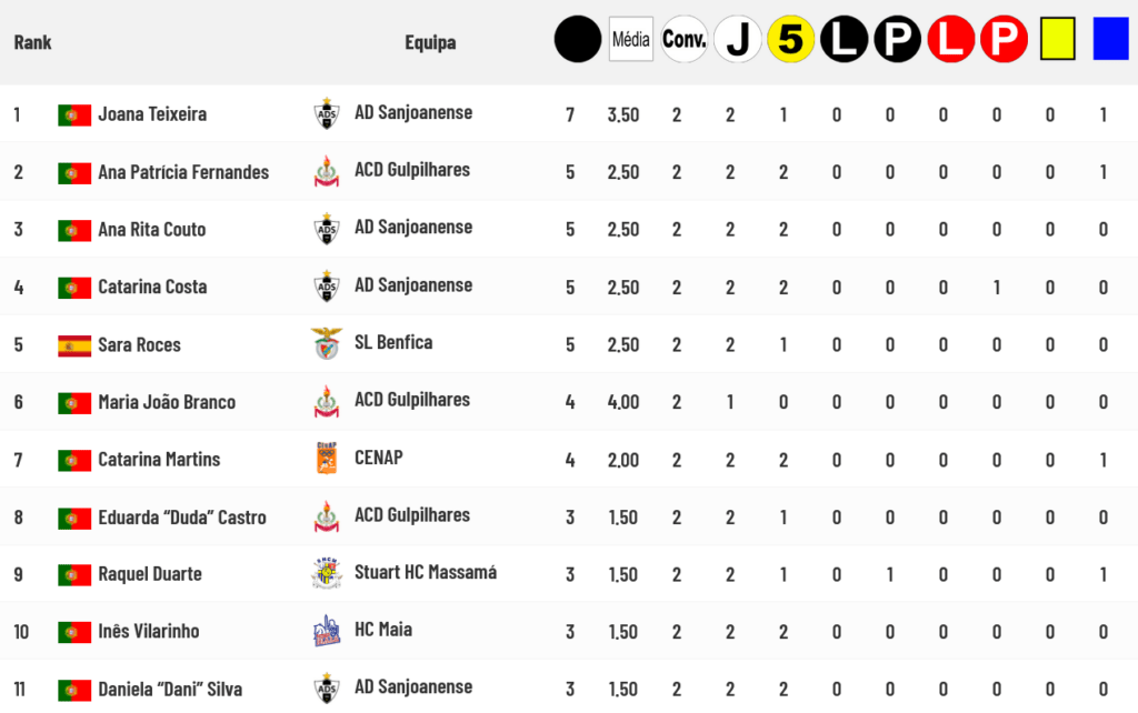 A lista das Goleadoras está assim ordenada (clique na lista abaixo para a consultar na totalidade):