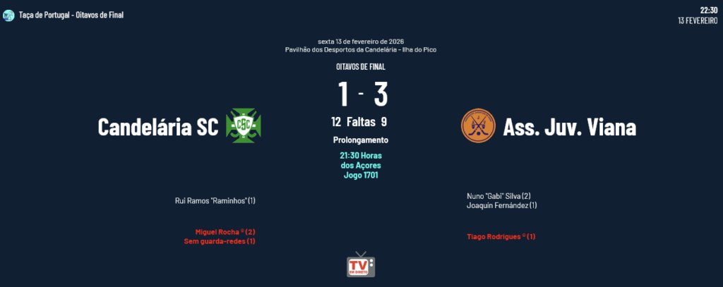 Realizou-se ontem o Candelária-Juventude de Viana a contar para os Oitavos de Final da Taça de Portugal com a vitória dos vianenses por 3-1, após prolongamento:
