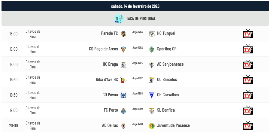 Hoje realizam-se os restantes 7 jogos com o seguinte agendamento: