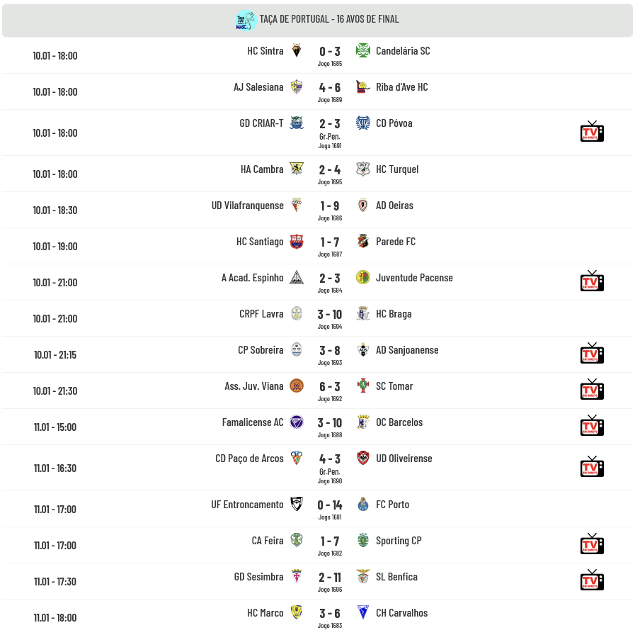Recordamos abaixo os resultados obtidos nos 16 Avos de Final: