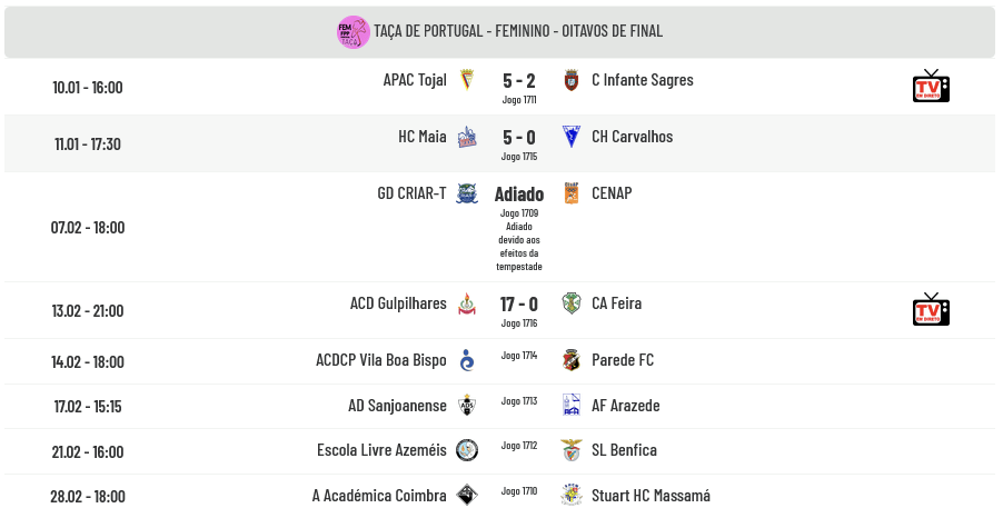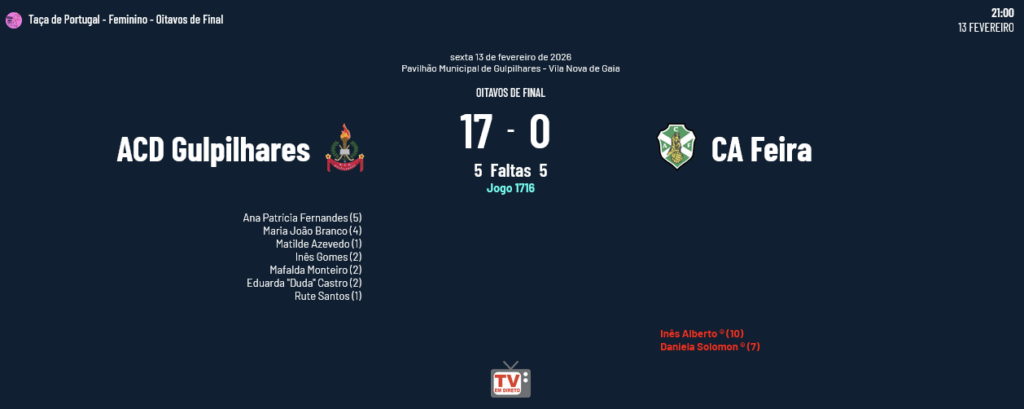 Realizou-se ontem o Gulpilhares-Académico da Feira a contar para os Oitavos de Final da Taça de Portugal Feminina com a vitória das gaienses por 17-0: