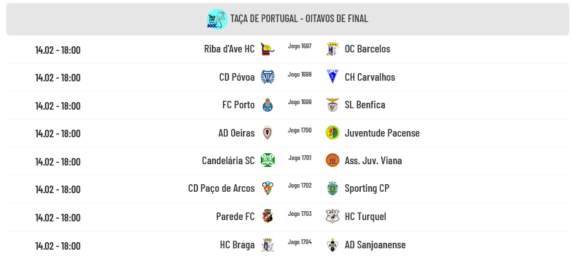 Com estes resultados, a próxima eliminatória, os Oitavos de Final, terá os seguintes jogos: