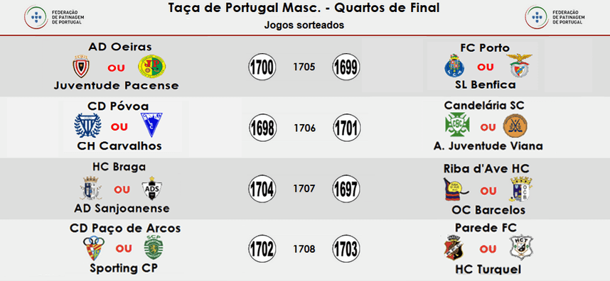 Os Quartos de Final irão, por sua vez, ter o seguinte emparelhamento: