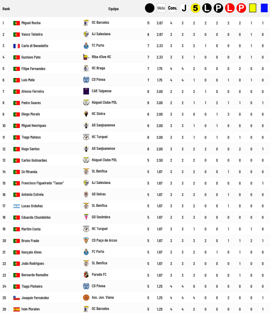 Miguel Rocha é o Goleador da competição com 11 golos marcados perseguido por Vasco Teixeira (com 8 golos) e um quarteto com 7 golos: Carlo Di Benedetto, Gustavo Pato, Filipe Fernandes e Luís Melo. Siga a ligação apensa à tabela abaixo para consultar a lista completa dos Goleadores: