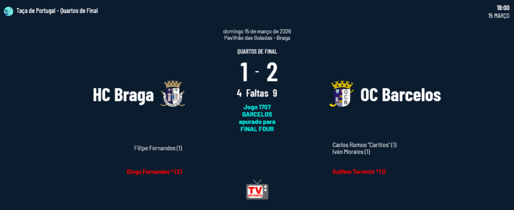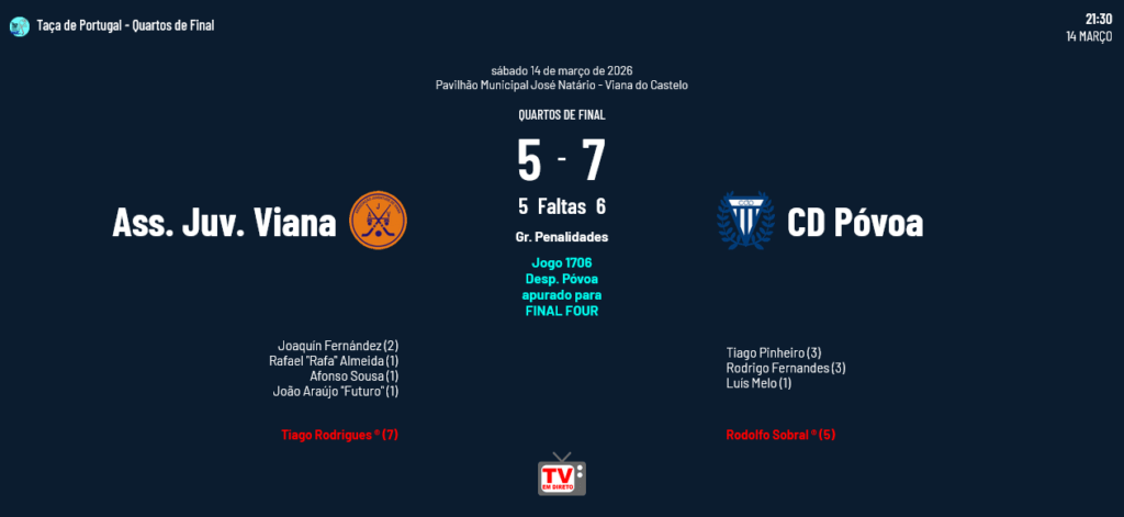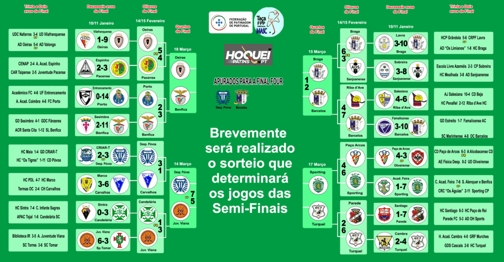 Realizaram-se no fim de semana passado dois jogos dos Quartos de Final da Taça de Portugal nos quais Desp. Póvoa e Barcelos garantiram lugares na Final Four, aguardando agora os outros dois semi-finalistas que sairão dos jogos a realizar hoje e amanhã.